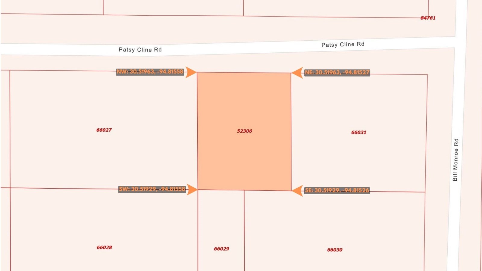 To visit this 0.29 acre Unrestricted Double lot for sale near Livingston, TX, search Patsy Cline Road, Livingston, Texas 77351 within Polk County on your phone. When you are near the land, search “30.51963, -94.81558” on Google Map to locate one of the corners. Contact our office for surveys (if available), county plat maps, Google Map boundaries and corners, and MapRight.