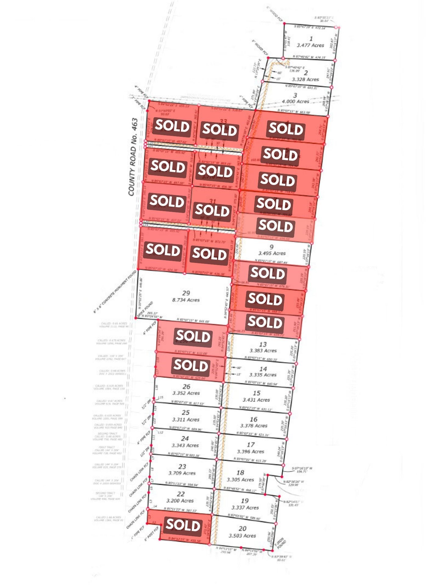 Upon closing, we recommend applying with the County for your 911 Address and Culvert Permit so that you can establish a driveway on your property. Call Limestone County Road and Bridge and provide a copy of your deed and survey marked with your desired location for a driveway.