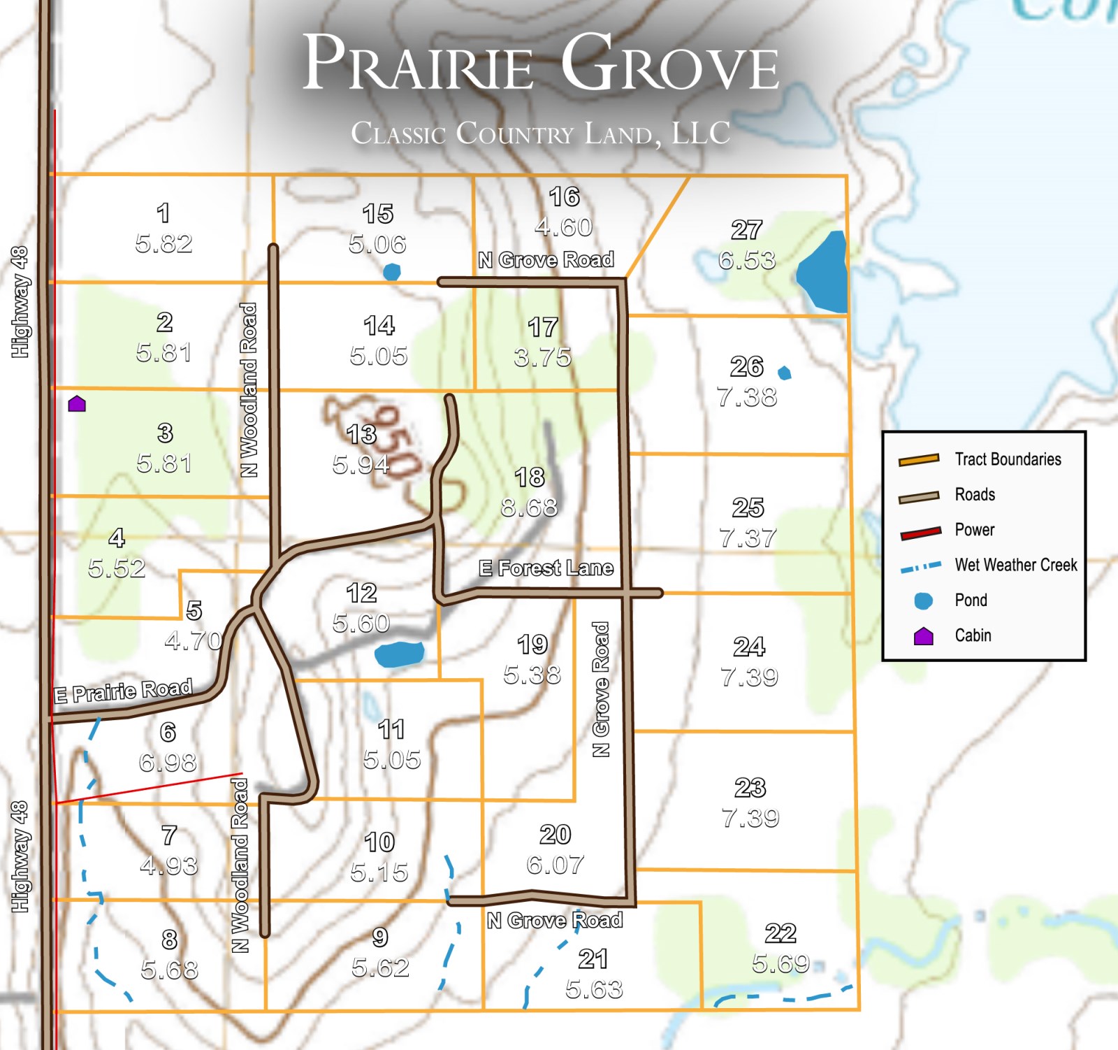 Tract 13 is a 5.94 acre lot that features a mixture of beautiful open meadows and moderately wooded areas throughout. The beautiful views of both the lot and the surrounding open land would make this lot a great place for a home or a weekend getaway.