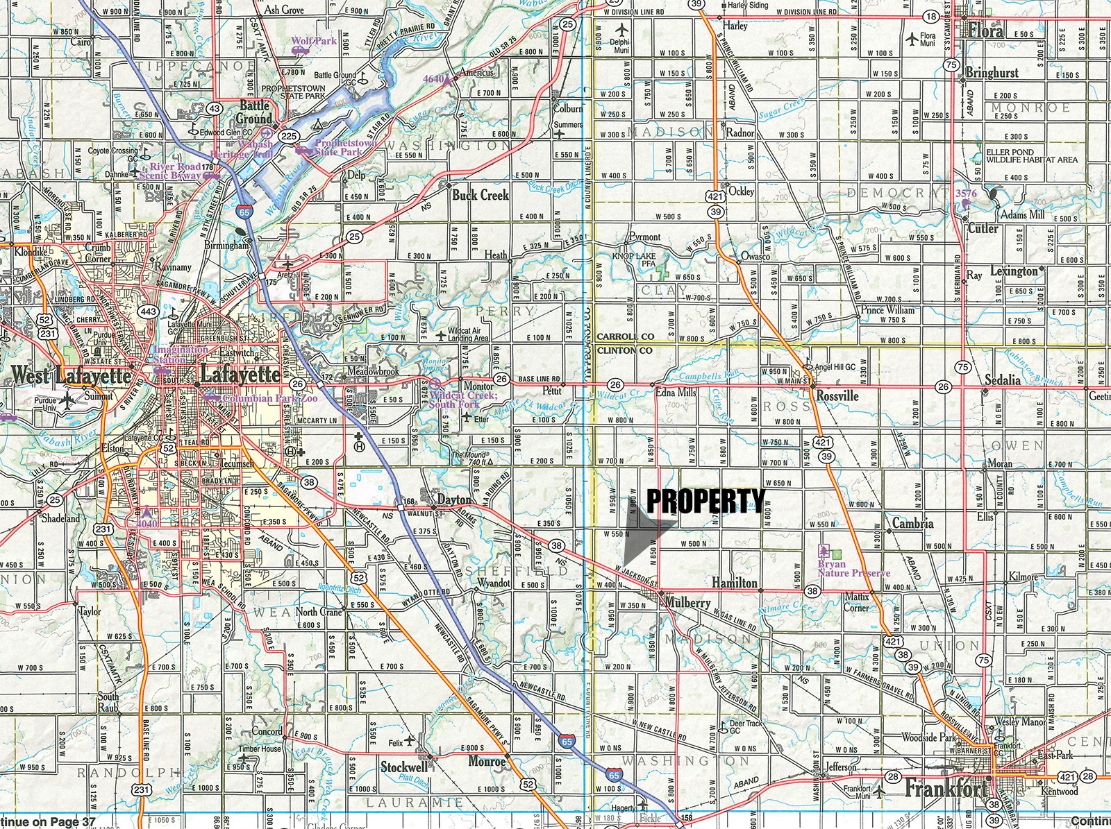 From I-65 & SR38 in Lafayette, travel East on SR38 6 miles, or 1 mile West of Mulberry and the farm is situated on the north side of the highway. Watch for sign on the farm.