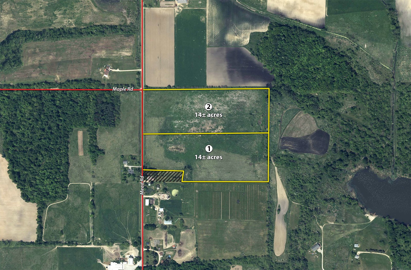 Tract 2: 14± ac of productive tiled farm ground with excellent road frontage on Mead Rd. and also offers hunting opportunity along the East side.