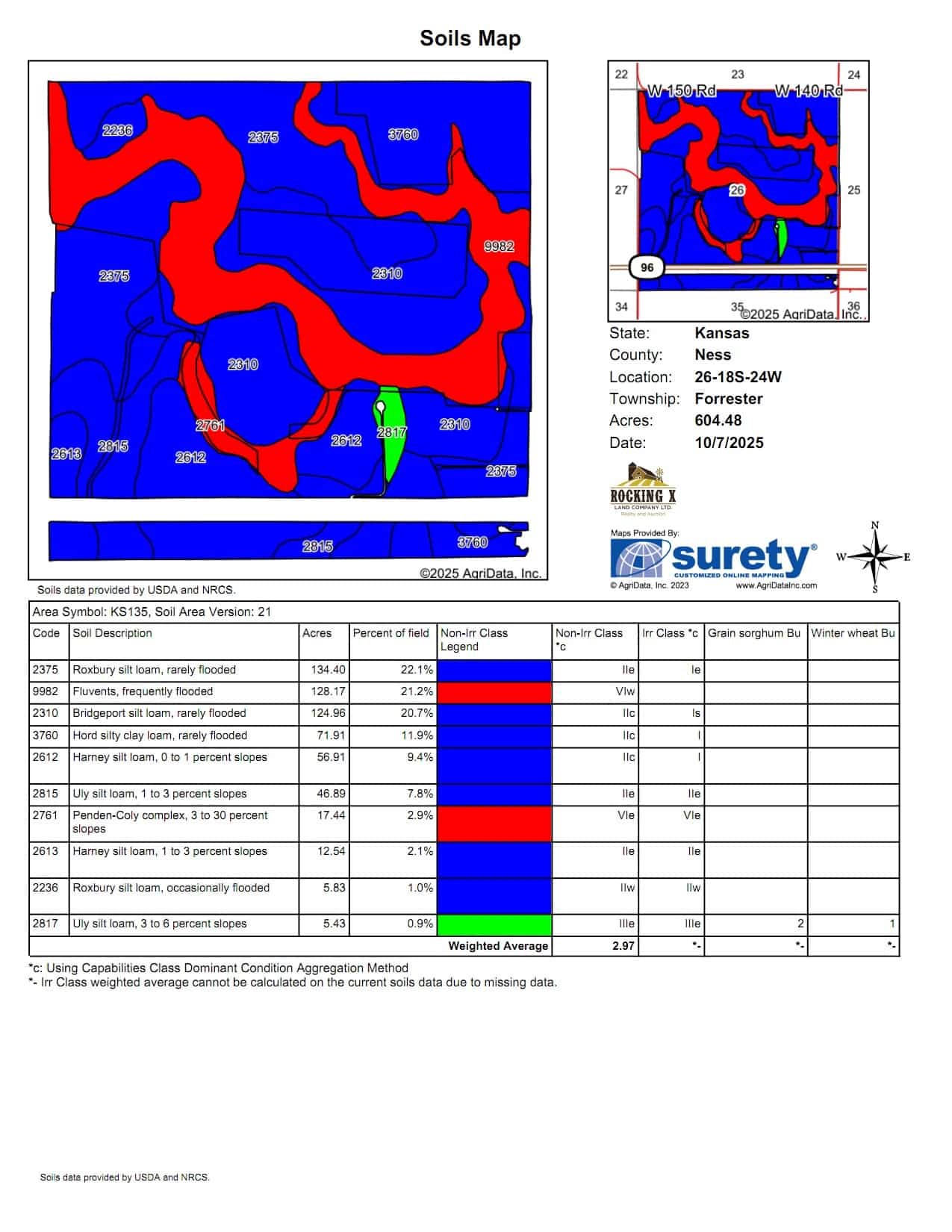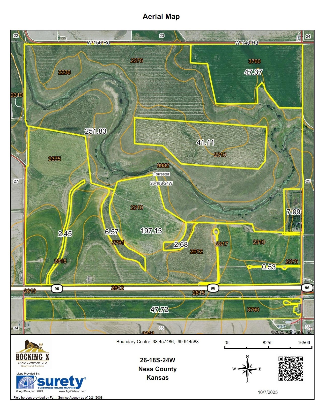 A rare opportunity awaits in Ness County, Kansas, with this 597-Acre tract offering a productive blend of dryland farming and native grasslands. Live water runs through the property, providing a habitat for both perch and catfish, which offer year-round water for livestock and wildlife.