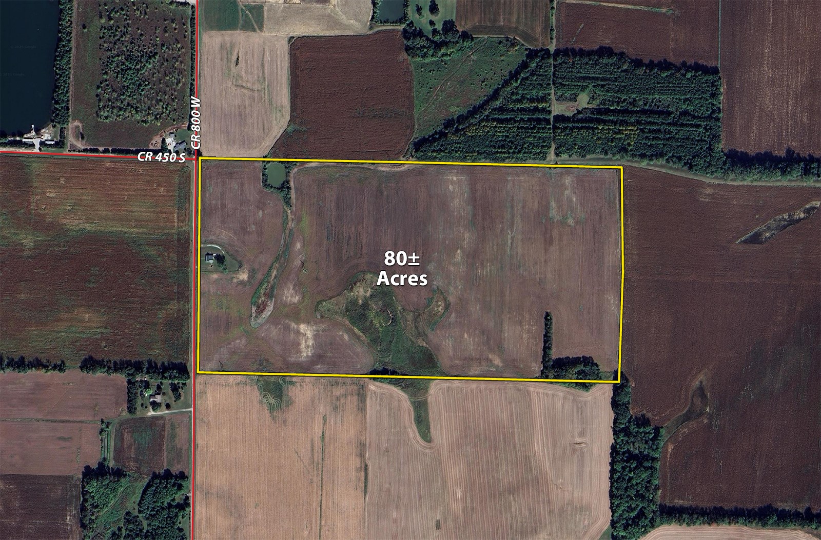 80 Acres+/- with approximately 77 tillable acres, predominant soils are Henshaw and Montgomery with some Rensselaer. There is a single-story frame home with 1136 square feet of living area, the home has a living room, 2 bedrooms, full bath and kitchen with built-in cabinets and appliances. There is a full basement and enclosed wrap around porch. The home is heated with a fuel oil furnace and has central air conditioning.