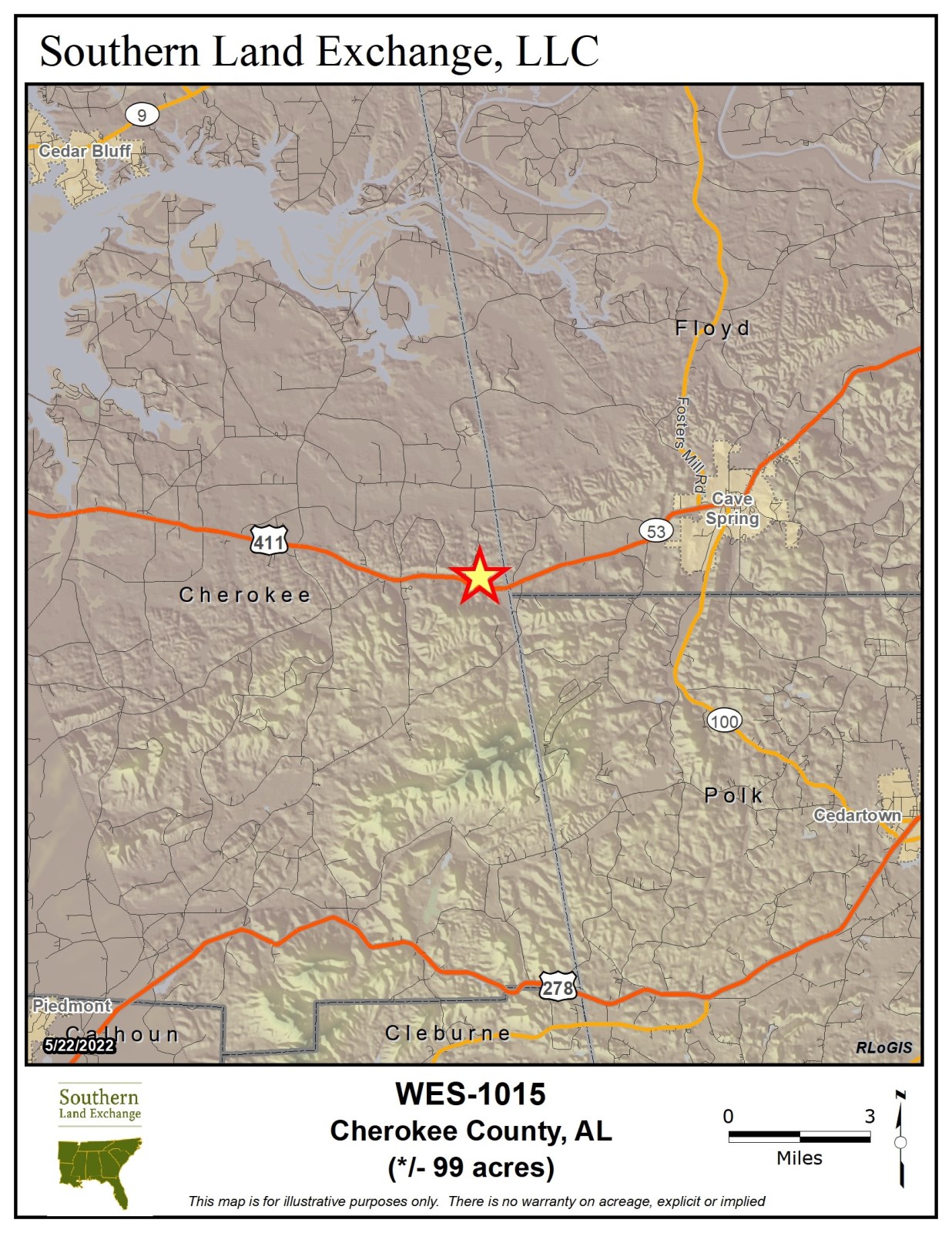 From Downtown Cave Springs, Georgia, proceed west on US HWY 411 for 6 miles, tract will be on the right.