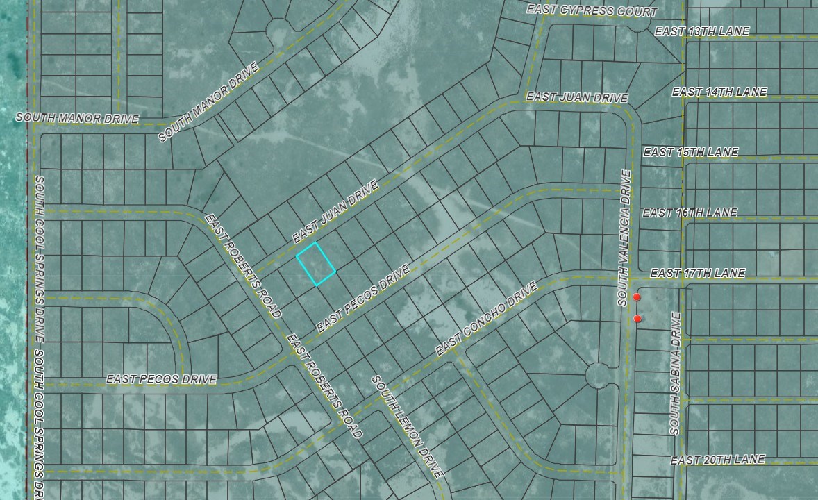 Take S Rex Allen Jr Dr south towards Twin Lakes Golf Club, turn right on Lake Circle Dr, turn left on E 17th Street, then turn left on S Valencia. S Valencia becomes East Juan Drive as you go around the left hand bend. Lot is down the end of the road on the left.