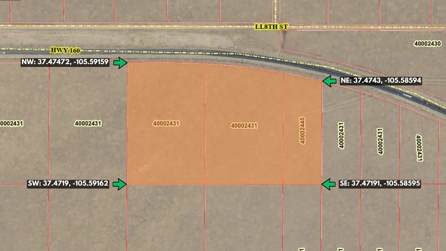 To visit this 41.10 Acres Mountain View near Alamosa CO, search Lots A08-A10, U.S. Highway 160, Blanca, , 81123 within on your phone. When you are near the land, search 37.47472, -105.59159 on Google Map to locate one of the corners. Contact our office for surveys (if available), county plat maps, Google Map boundaries and corners, and MapRight