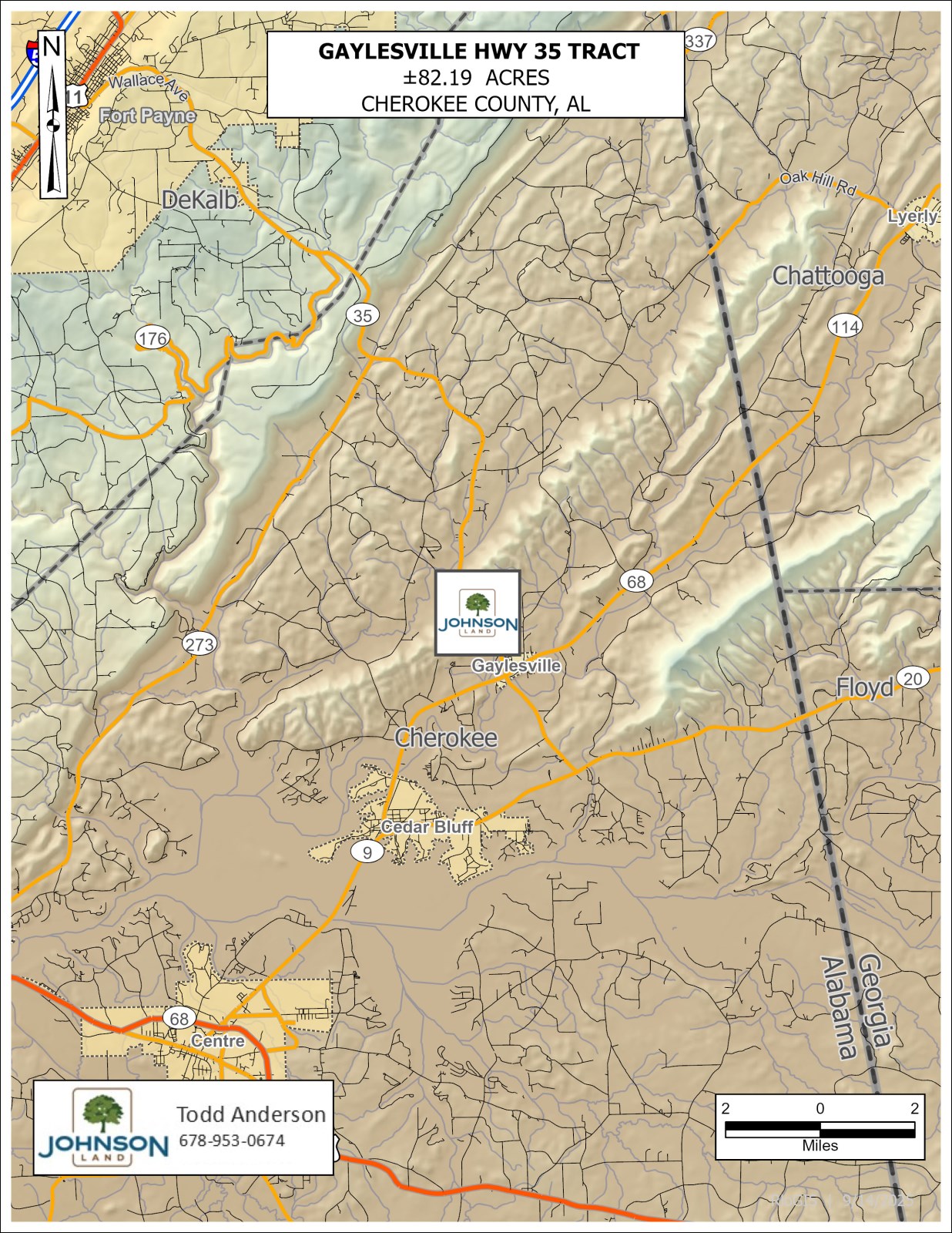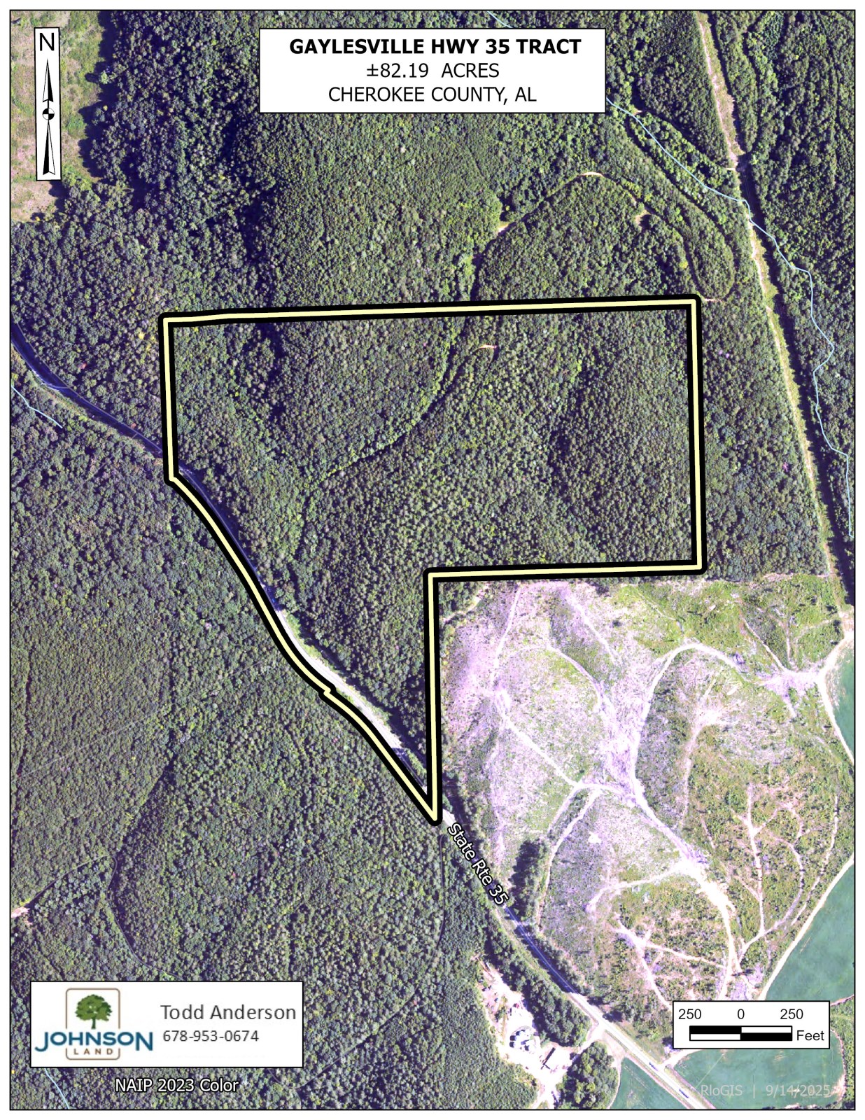 Located in Cherokee County, Alabama, just north of Gaylesville, this property offers over 2,000 feet of frontage along State Highway 35. Featuring mature planted pines and dramatic topography with steep slopes rising to high hilltops, this tract presents an exceptional opportunity for a recreational retreat.