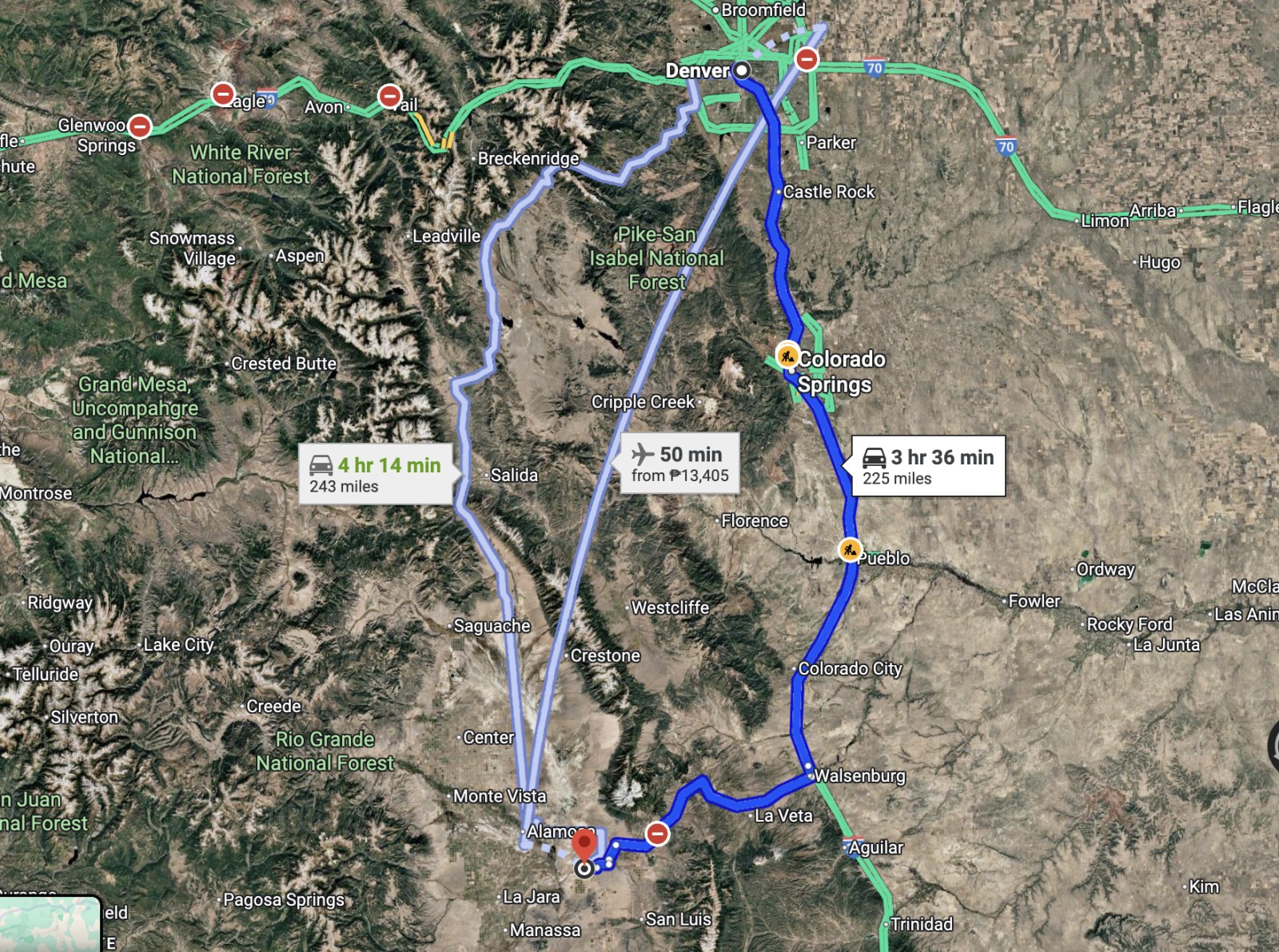 Follow I-25 S to I-25BL S in Huerfano County. Take exit 52 from I-25 S