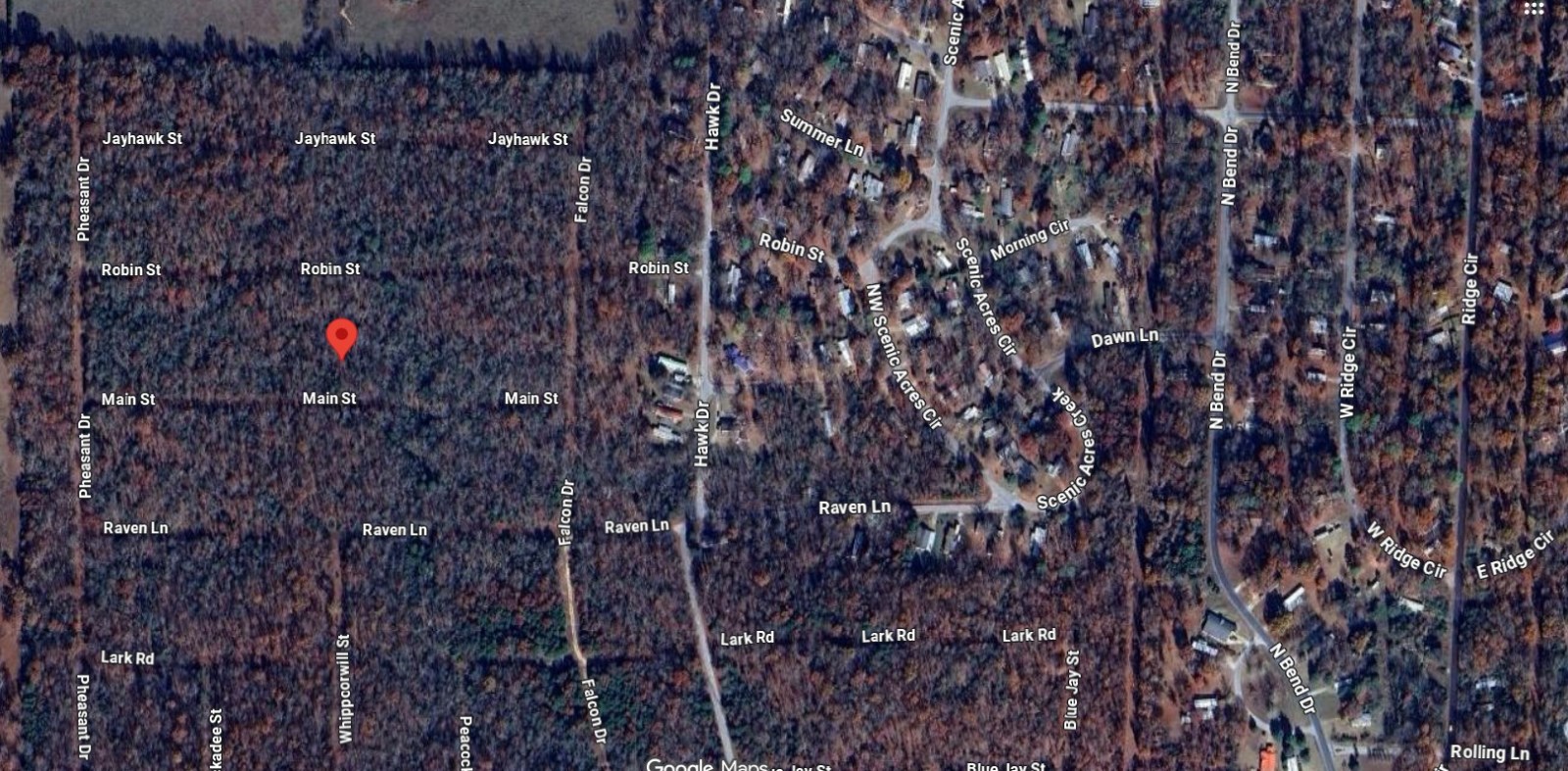 Go about 1/2 mile and Hawk Dr will intersect with Raven. Turn left on Raven and then right on Falcon Dr and the clearing for the Martin Ln road is on your left. The lot is about 200yds down on the right.