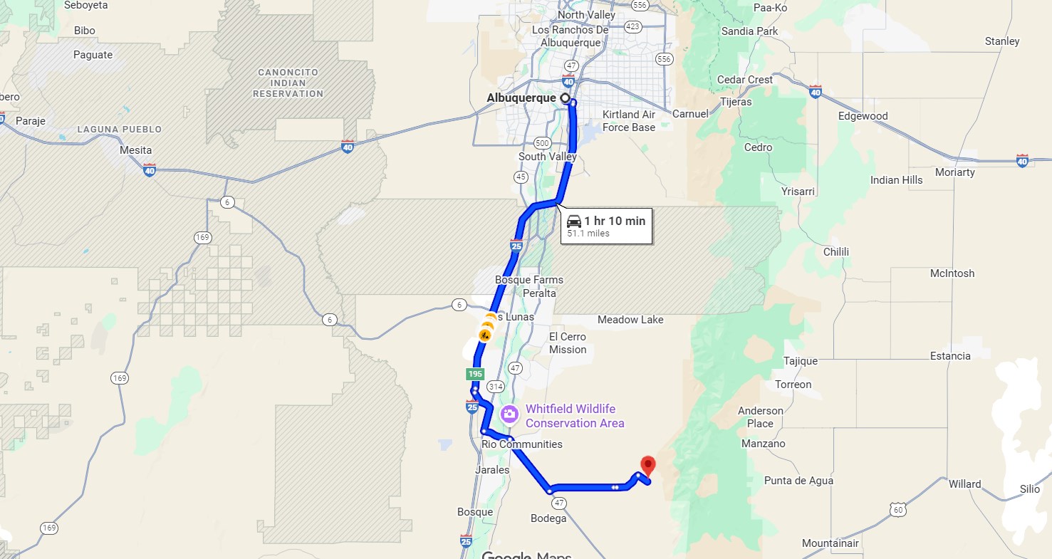 Follow I-25 S to I-25BL in Belen. Take exit 195 from I-25 S