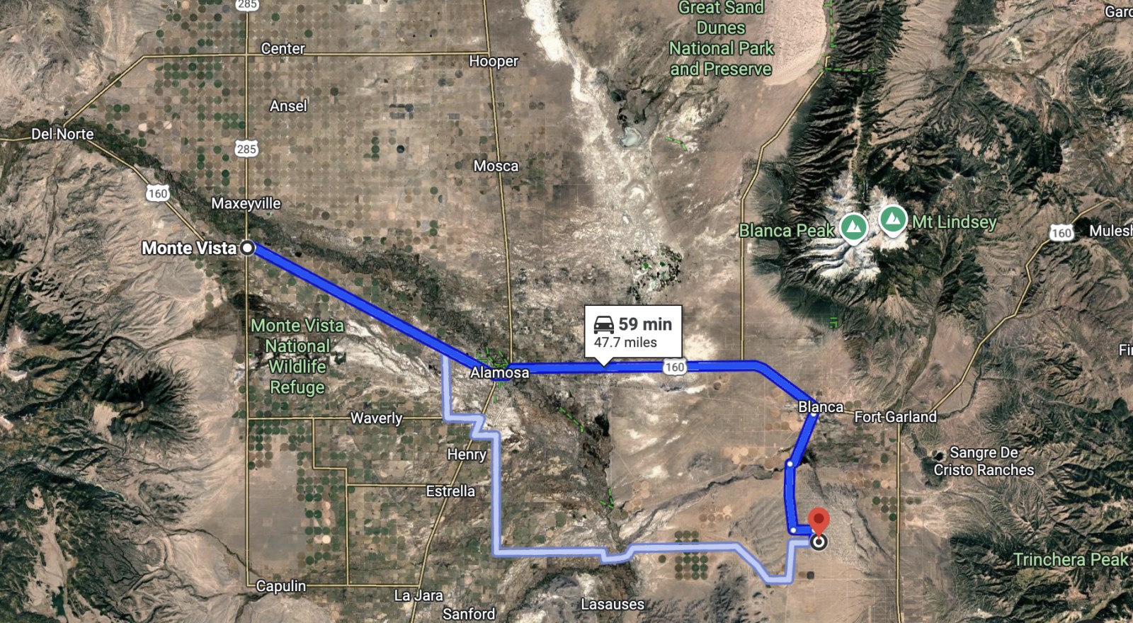 Follow US-160 E to Airport Rd in Blanca