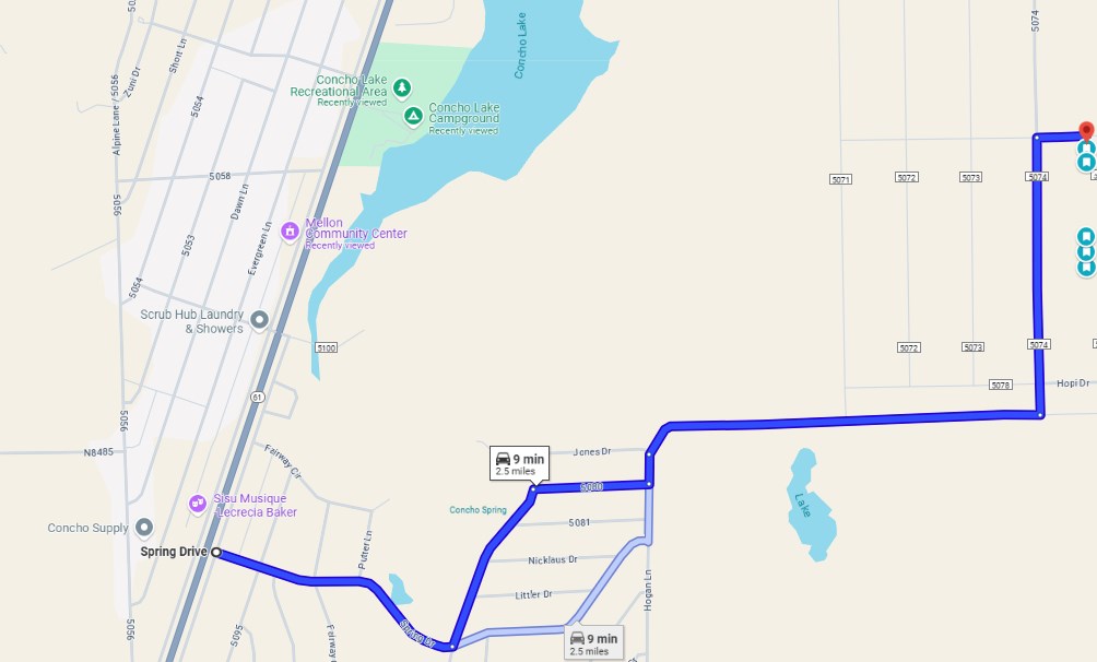 Take 5098/Clubhouse Ln, 5083/Spring Dr, Ranch Dr and Oak Ln to 5077