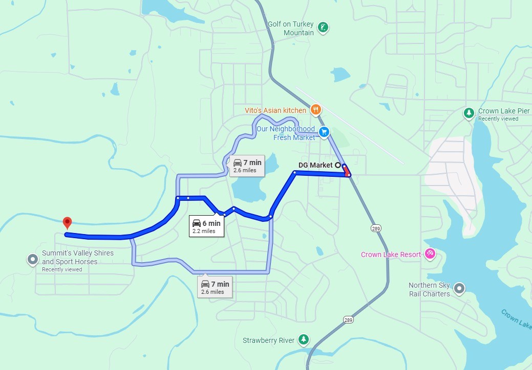 Just 1/3 mile to Summit's Valley Shires & Sport Horses