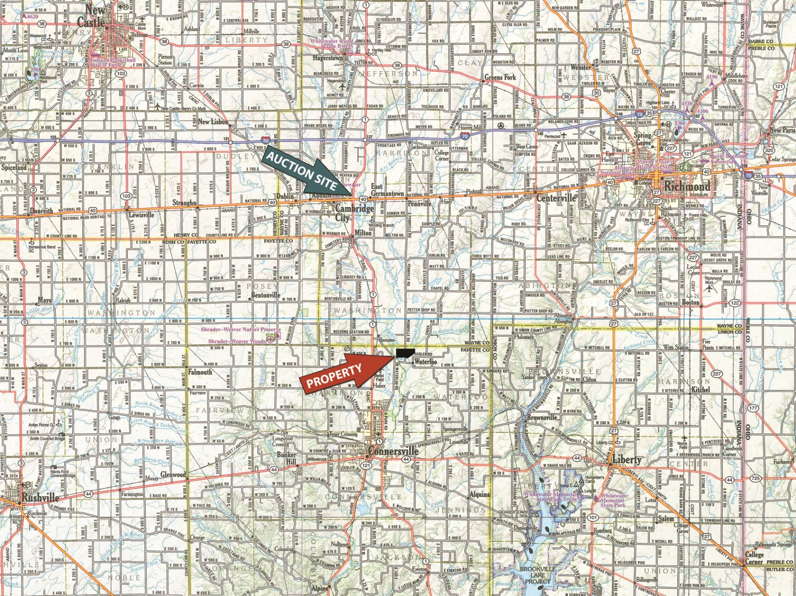 From the northeast edge of Connersville, travel east on 30th St. to Waterloo Rd. Take Waterloo 1.5 miles to E. CR 440 North. Then right 1/4 mile to Pennville Rd. North on Pennville Rd. to the farm on both sides of the road.
