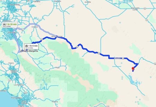 General Location: 56.6 miles to Santa Margarita, California