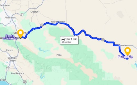 General Location: 50.6 miles to Santa Margarita, California