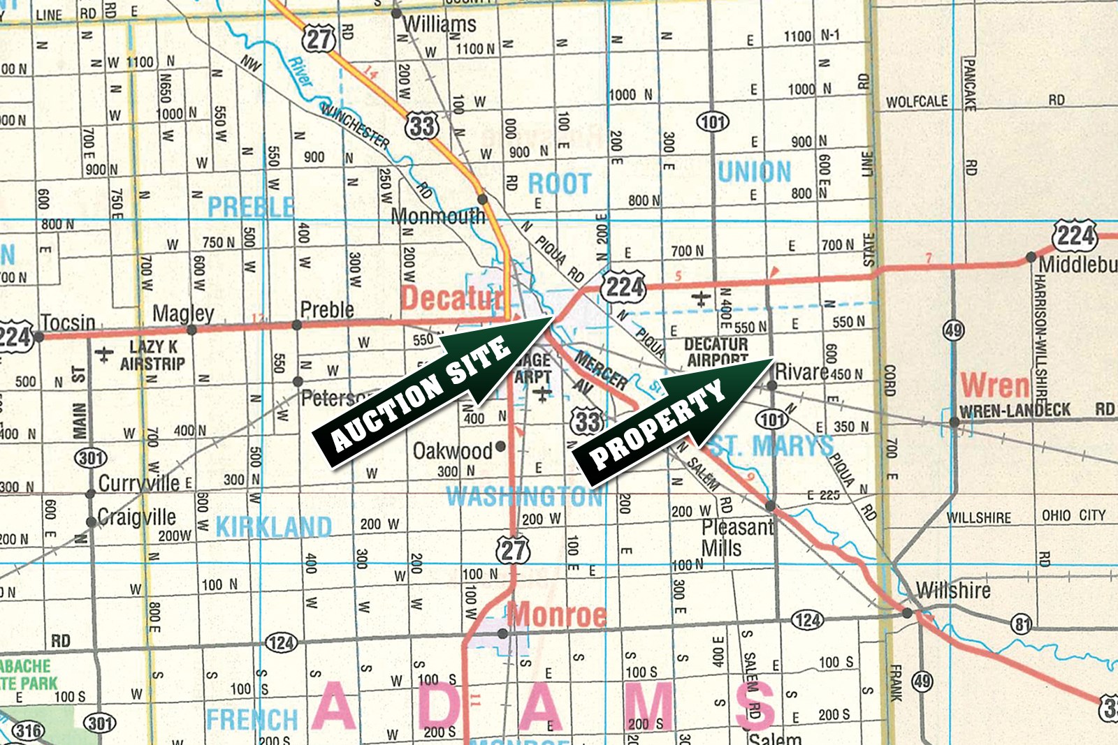 From Decatur, travel 4.5 miles East on US HWY 224 to SR 101, go South on SR 101 for 1.5 miles to the property.