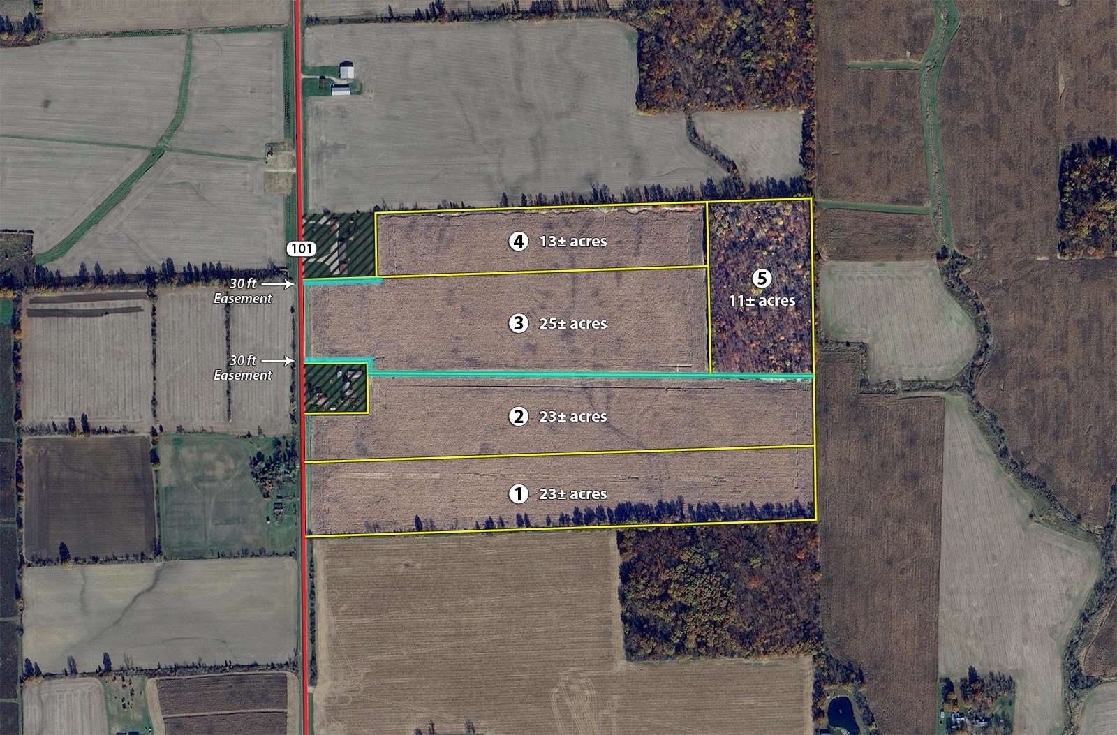 Tract 4: 13± ac mostly tillable. Soils are Blount & Pewamo. Access is a 30' easement from SR 101.