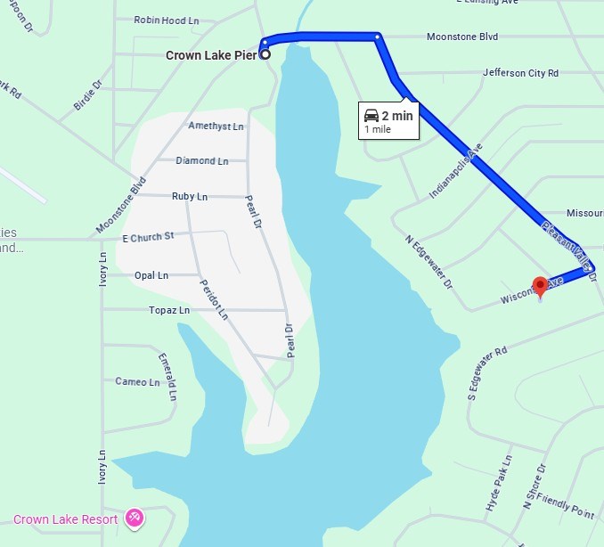 • 1 Mile TO Crown Lake Pier (easy walking or quick drive)