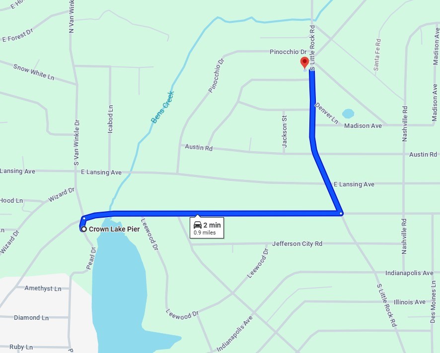 • 3/4 mile TO Crown Lake Pier (easy access, not too far)