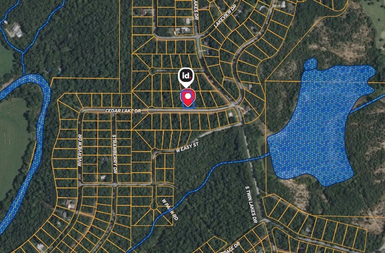 Walk one block to Cedar Glade Lake. Drive 1.2 miles to affordable groceries. Live among beautiful fir and oak trees. Own a level corner lot with fire hydrant insurance savings. Natural privacy and peace on 0.41 wooded acres.
