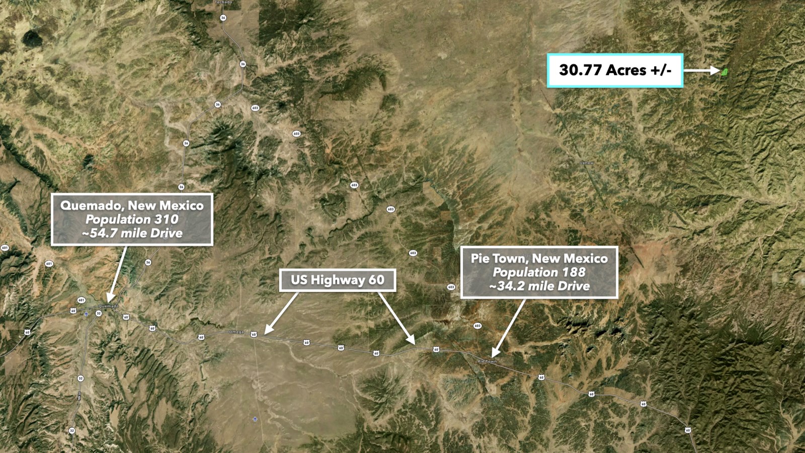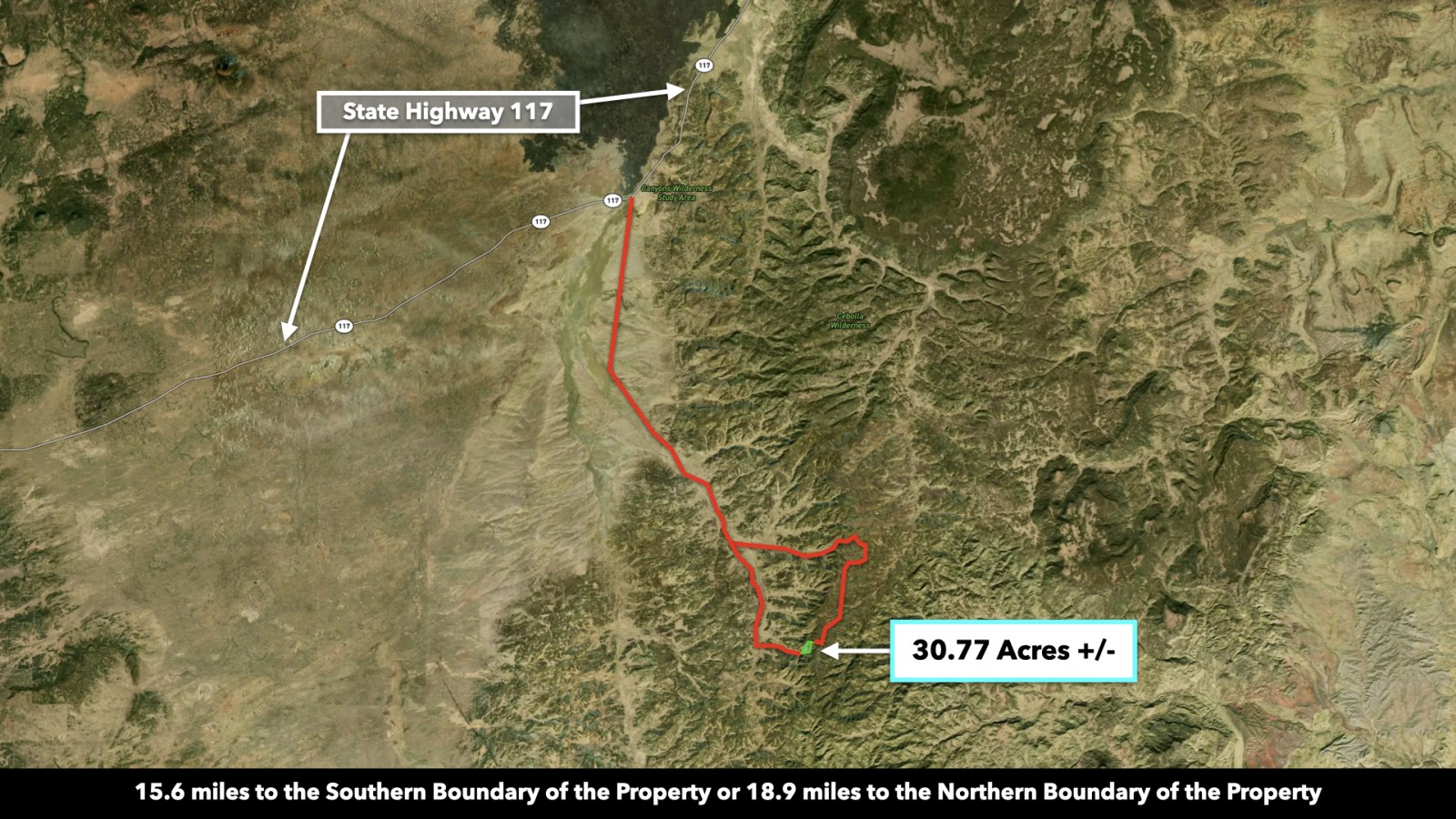 • Nearest major route is NM State Highway 117, approximately 15.6 miles via the south route or 18.9 miles via the north route.