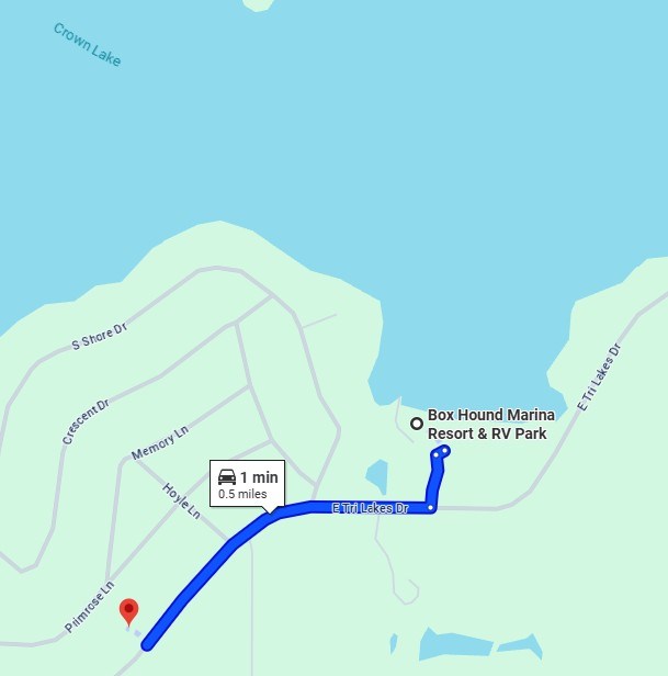 Distance to Crown Lake Resort: 1.5 miles