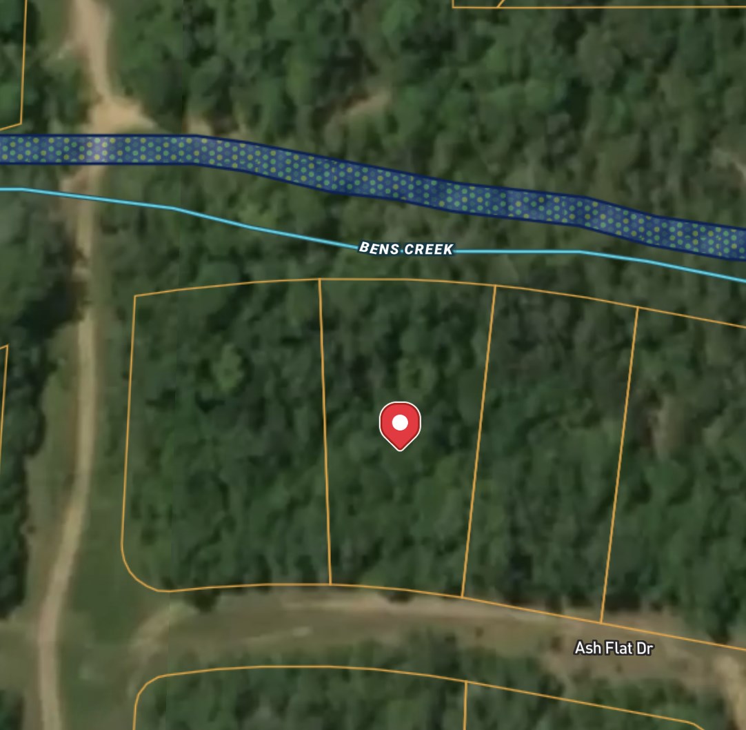 This flat, wooded property in the Green Briar area of Horseshoe Bend sits directly alongside Ben's Creek, creating a setting that feels calm, private, and naturally removed without being isolated. The steady presence of the creek adds a layer of separation from everyday noise, giving the land a grounded, peaceful atmosphere that's increasingly hard to find. Mature trees surround the property, offering shade, privacy, and a sense that the land has been left largely untouched, making it easy to picture slowing down and enjoying the space as it is.
