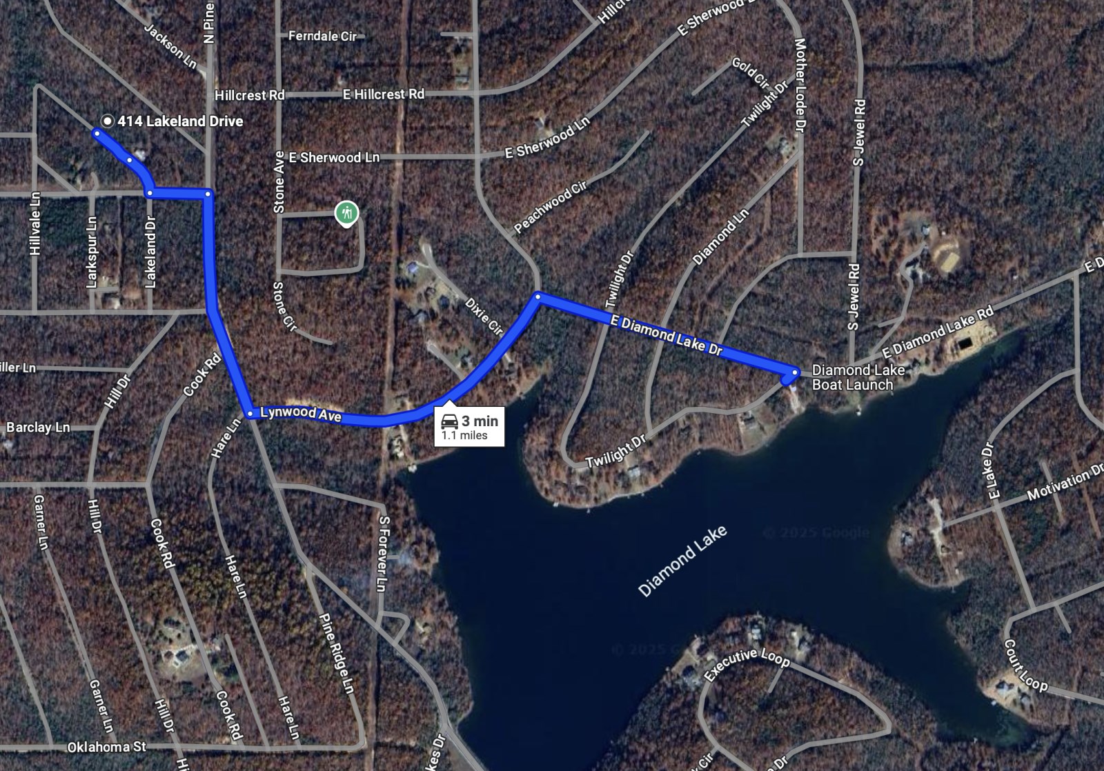 This property is ideally placed for outdoor enthusiasts. Diamond Lake's public boat launch is only three minutes away, offering easy access for boating and fishing. Crown Lake, also a three-minute drive, provides additional options with its pier and surrounding park space. Golf courses, hiking trails, and Horseshoe Bend's downtown amenities are all close by, giving you year-round recreation without sacrificing convenience.