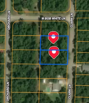This property includes two adjacent lots on a paved road with power poles already on site. Zoning allows single-family homes with a minimum size of 550 square feet, and RVs are permitted during the building phase. A septic system will be needed for waste management, and the lots are within the service area for city water. The land is level, flood-free, and suitable for immediate planning and development.