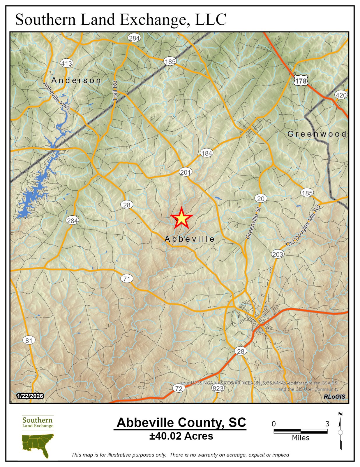 Minutes from Abbeville, SC and approximately 35 minutes from Anderson, SC. The mature timber