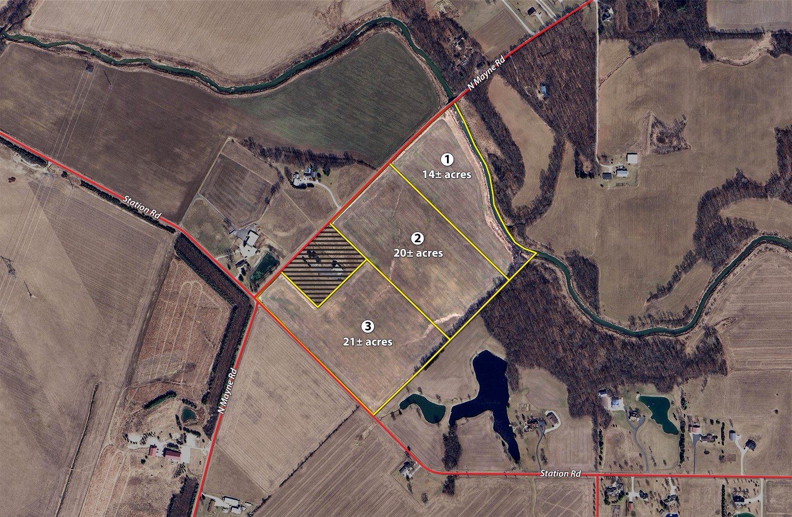 Tract 2: 20± ac with an abundance of road frontage along N Mayne Rd and over 1,000 ft in depth. The soils are mostly Glynwood silt loam with some Morley silt loam toward the back.