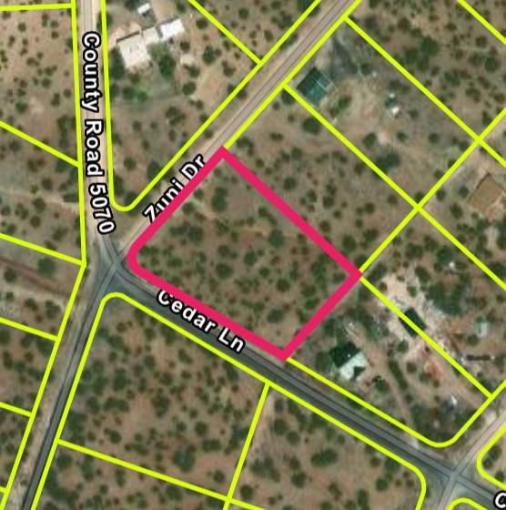 This parcel sits on a quiet corner of Zuni Drive with direct dirt-road access. The property allows single-family homes and is suitable for multi-level or walkout basement construction. Power lines are located directly on site for simple connection. A private well or water tank system will be required, along with a septic installation. The property is not in a floodplain, and the gradual slope offers a stable foundation with long-range views from multiple build points.