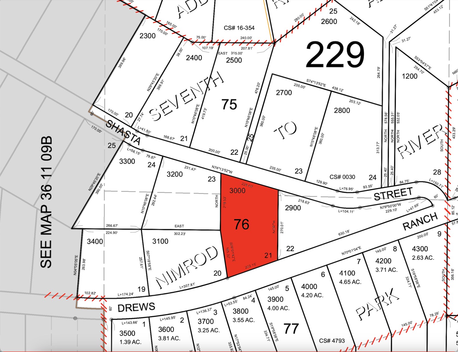 Access: Drews Rd. (asphalt road) & Shasta St. (dirt road)