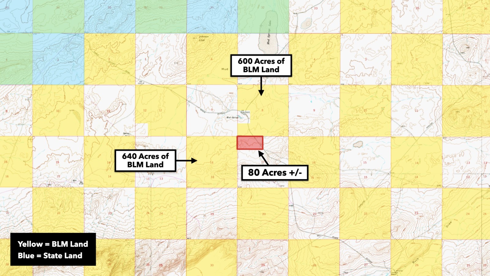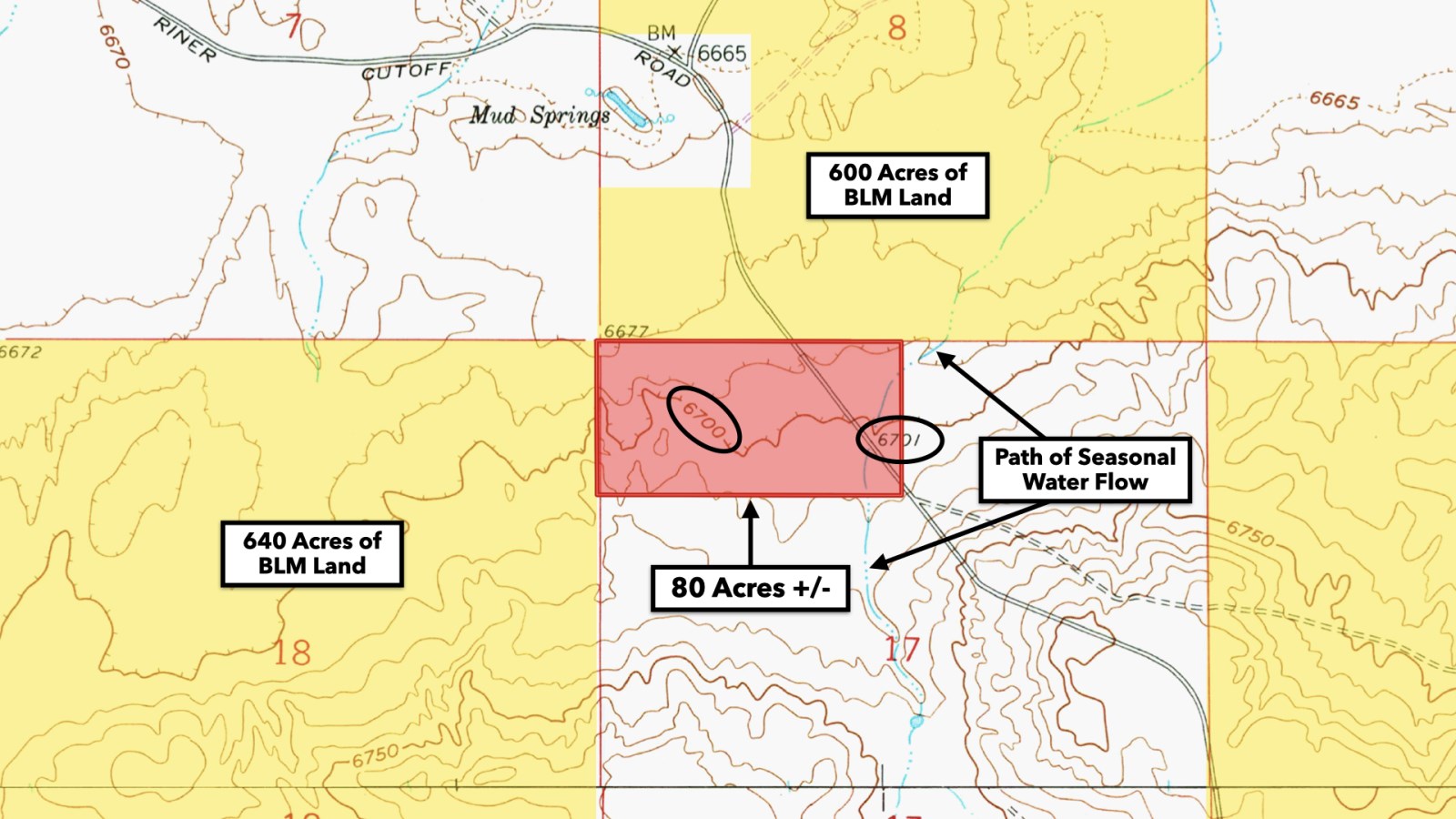 This property offers room to roam. A checkerboard of publicly-accessible BLM land surrounds this property in addition to contiguous BLM land to the north.